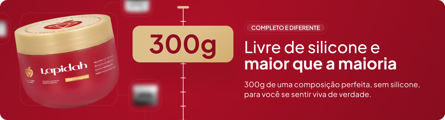 pensado para melhorar todos os aspectos da sua pele, dimunir a flacidez, aliviar estrias, hidratar profundamente e acelerar a redução de medidas por todo o seu corpo! Centenas de mulheres ja usam lapidah no dia-a-dia, e em uma pesquisa feita com nossas clientes: